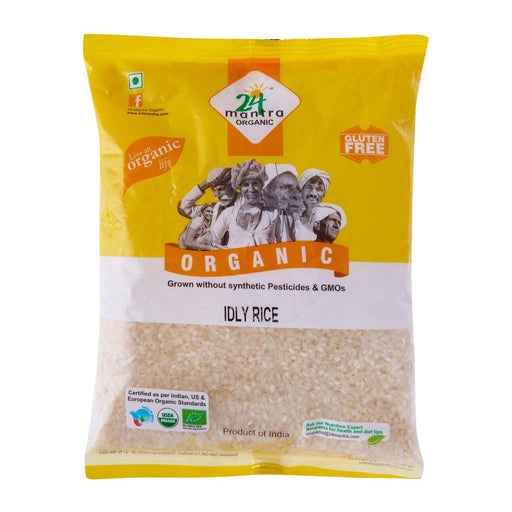 Organic idli rice straight from independent farms in south India. Idli rice grains are short, fat and have a white spot in the middle of the grain....